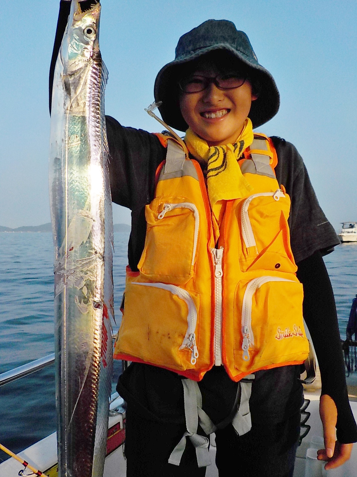 今日は、ファミリーフィッシングで、船釣り初体験の太刀魚釣りです